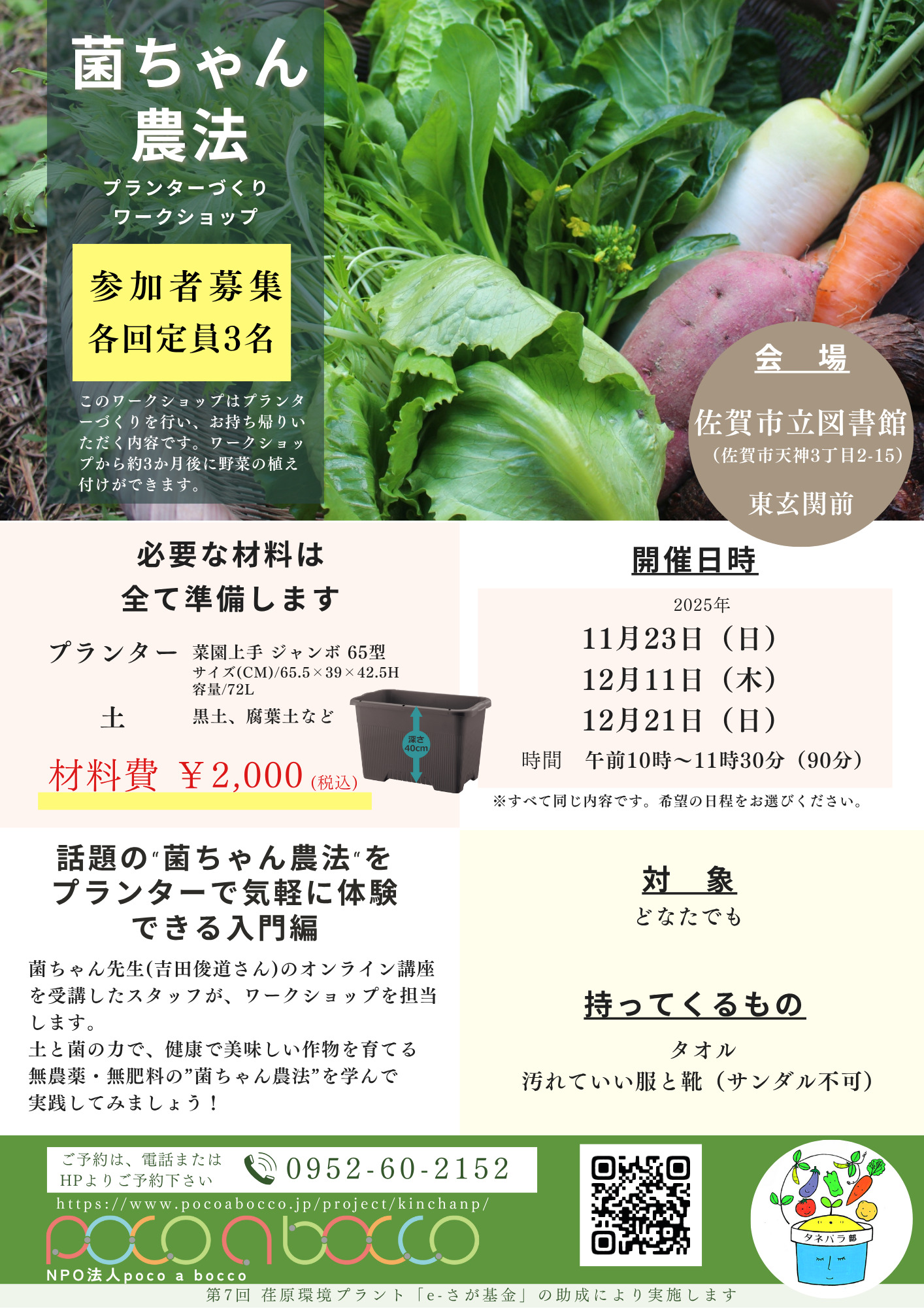 - 1/25 (日) 10:00 – 11:30 菌ちゃん農法プランターづくり ワークショップ