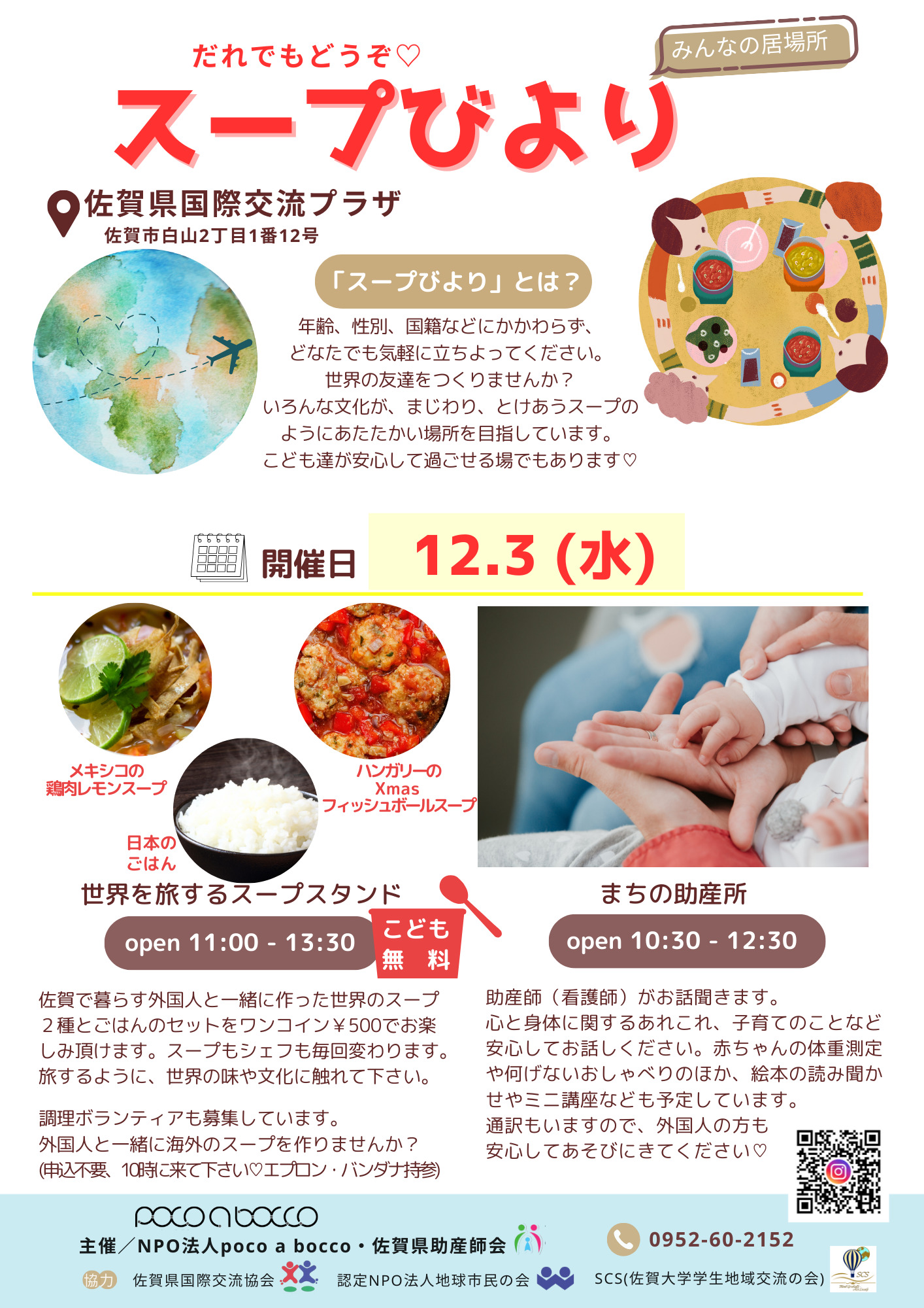世界のスープ2種と、日本のソウルフード「炊き込みご飯」をつくります。調理はどなたでもご参加いただけます。
